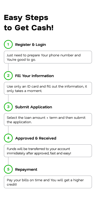 A2: After the application is approved, the cash will be paid into your e-wallet or bank account .